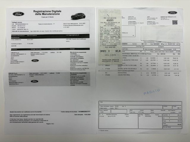 TAGLIANDO DI MANUTENZIONE ESEGUITO PRESSO NOSTRA OFFICINA UFFICIALE FORD , RICEVUTA DIMOSTRABILE: