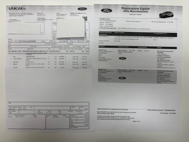 TAGLIANDI DI MANUTENZIONE ESEGUITI PRESSO NOSTRA OFFICINA UFFICIALE FORD , RICEVUTE DIMOSTRABILI.