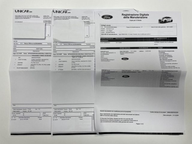TAGLIANDI DI MANUTENZIONE ESEGUITI PRESSO NOSTRA OFFICINA UFFICIALE FORD , RICEVUTE E ATTESTATO SERVICE DIMOSTRABILI :