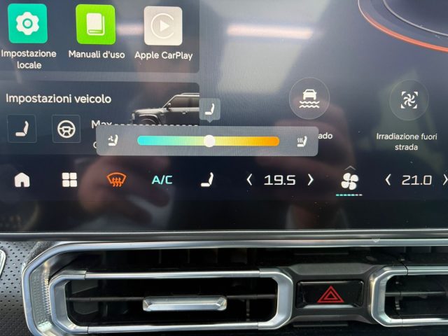 -Tetto panoramico apribile-Cerchi in lega DA 20 pollici-Tergicristallo con sensore pioggia-Portellone posteriore con chiusura soft touch-Fari anteriori e posteriori a LED-Luci diurne a LED-Follow me home-Fari abbaglianti automatici-ESS (Segnale di Frenata di emergenza)-Luci interne multicolor-Spot luci lettura anteriori a sfioramento (luce bianca, con ritardo spegnimento)-Spot luci lettura posteriori (luce bianca)-Specchietto retrovisore interno antiriflesso-Visiera per il conducente e il passeggero con specchietto e regolabile-Porta di ricarica 12V-Porta di ricarica bagagliaio 12V-Porta USB anteriore/posteriore type B / type C-Vetri elettrici anteriori ad impulso singolo con sensore antischiacciamento-Vetri con filtro anti UV-Vetri oscurati posteriori-Climatizzatore automatico bizona-Bocchette aria posteriori-Bracciolo anteriore con vano interno refrigerato-Volante in ecopelle-Rilevamento mani sul volante-Volante con tasti multifunzione regolabile in altezza e profondità-rivestimento sedili in pelle e pelle scamosciata-Sedile del conducente regolabile elettricamente in 6 posizioni con supporto lombare elettrico a 4 vie e con 3 memorie-Memoria del sedile del conducente con funzione benvenuto-Sedile passeggero regolabile elettricamente in 3 posizioni e con 3 memorie-Sedili anteriori ventilati-Inclinazione del sedile posteriore regolabile-Airbag conducente e passeggero-Airbag laterali-Airbag laterale a tendina-Allarme cintura di sicurezza slacciata per conducente e passeggero (spia + suono)-Allarme cintura di sicurezza posteriore slacciata (simbolo + suono)-Avviso Stanchezza alla Guida (simbolo + suono)-TPMS (Sistema di controllo della pressione degli pneumatici)-Sensori di parcheggio anteriori-Sensori di parcheggio posteriori-Allarme Antifurto-Immobilizer-Schermo centrale da 15,6 pollici-Quadro strumenti LCD da 10 pollici-Connessione Wireless-Infotainment system (radio, Bluetooth, connessione telefono senza cavo)-Ricarica wireless con raffrescamento-Radio AM, FM, DAB-Sistema hi-fi Sony 8 altoparlanti con sub-woofer-Retrocamera con linee guida dinamiche-Telecamere panoramiche a 360 gradi con funzione di telaio trasparente peroff road-LDW (lane departure warning) Avviso Deviazione Corsia-RDP (Lane departure assist) Mantenimento di corsia-BSD (Blind spot detection) Rilevamento Angolo Cieco-ACC (Adaptive cruise control) Cruise Control Adattivo-AEB (Automatic emergency braking) Frenata di Emergenza Automatica (sia con veicoli che con pedoni)-HMA (intelligent headlight control) Assistenza Fari Abbaglianti-LKA (Lane keeping system) Assistenza Automatica Mantenimento Corsia-FCW (Front collision warning) Avviso Collisione Frontale-TJA (Traffic jam Assist) Assistenza guida automatica nel traffico-ICA (Integrated cruise assist) Regolatore adattivo della velocità-ELA ( Emergency Lane Assist) Sistema di Avviso di mantenimento della corsia