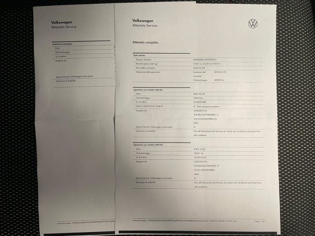 TAGLIANDI DI MANUTENZIONE ESEGUITI PRESSO NOSTRA OFFICINA UFFICIALE VOLKSWAGEN , ATTESTATO SERVICE DIMOSTRABILE.