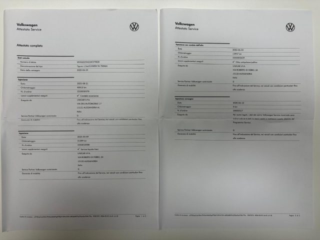 TAGLIANDI DI MANUTENZIONE ESEGUITI PRESSO OFFICINA UFFICIALE VOLKSWAGEN , ATTESTATO SERVICE DIMOSTRABILE.